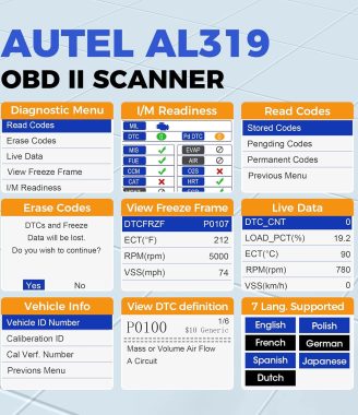 Autel Professional OBD2 Scanner AL319 Code Reader, Enhanced Check and Reset Engine Fault Code, Live Data, Freeze Frame, CAN Car Diagnostic Scan Tools for All OBDII Vehicles After 1996, 2025 Upgraded