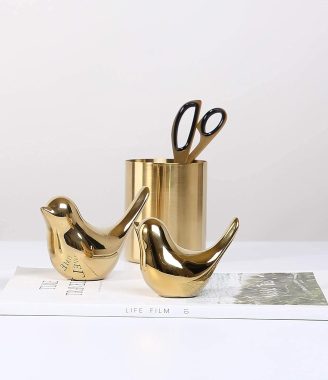 FANTESTICRYAN Small Birds Statues Gold Home Decor Modern Style Figurine Decorative Ornaments for Living Room, Bedroom, Office Desktop, Cabinets