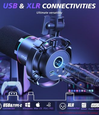 MAONO XLR/USB Dynamic Microphone Kit, RGB Podcast Mic with Software, Mute, Gain Knob, Volume Control, Boom Arm for Streaming, Gaming, Voice-Over, Recording-PD200XS Black